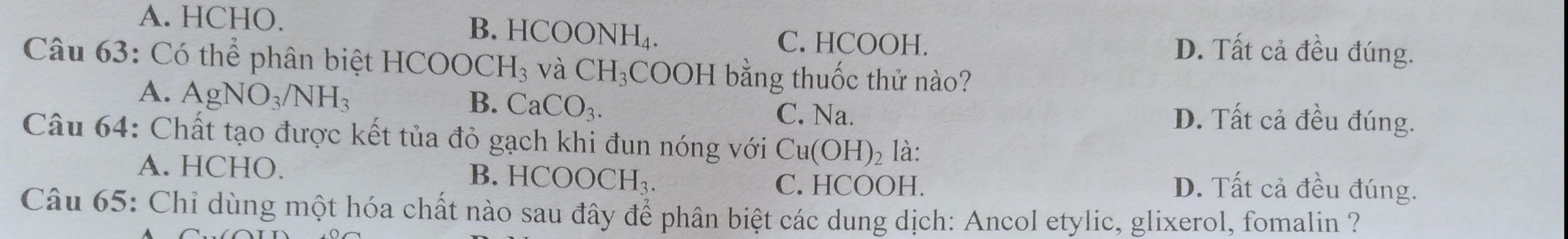 Tất cả đều có nhóm $HCO-$ (giống anđehit) nên đều có tính chất của anđehit.