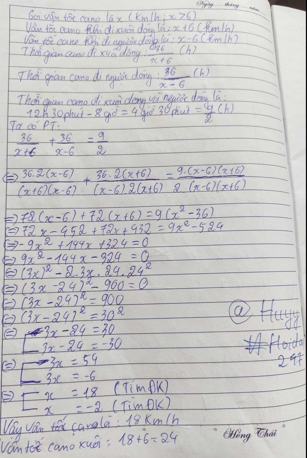 Vận tốc của ca nô khi xuôi dòng là: x+6 (km/h)