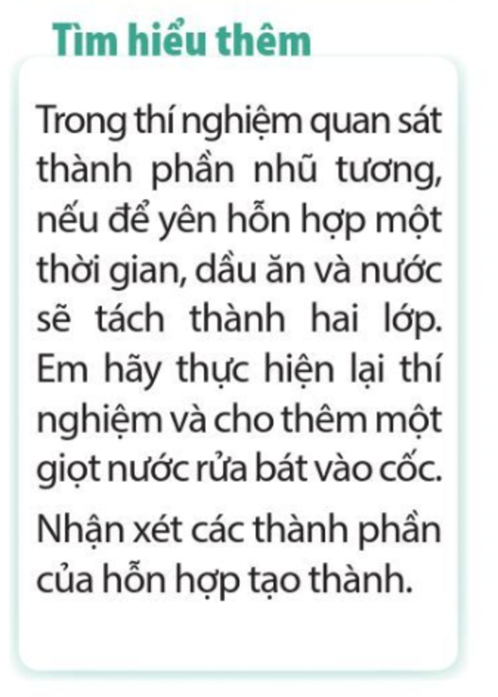 Hỗn hợp tạo thành gồm dầu ăn, nước rửa bát và nước.