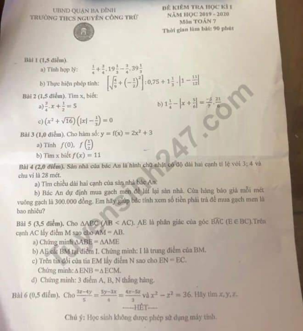 b,xét ∆ABI và ∆AMI có