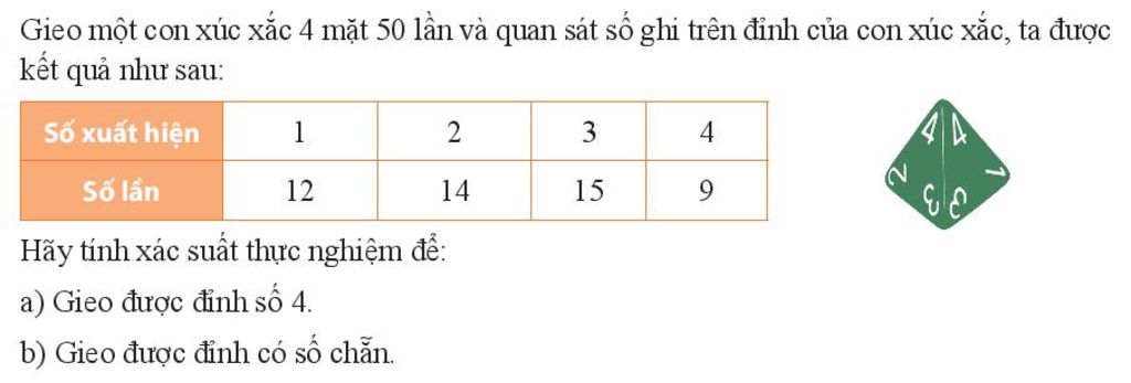 a.Xác suất thực nghiệm của sự kiện gieo được đỉnh số $4$ là: