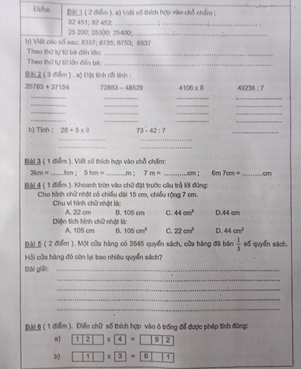 Chu vi hình chữ nhật là : 44cm Diện tich hình chữ nhật là : 105 cm²