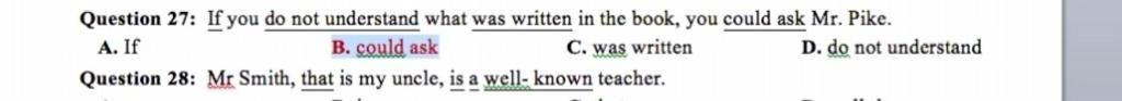 Question 28: Mr Smith, that is my uncle, is a well- known teacher.