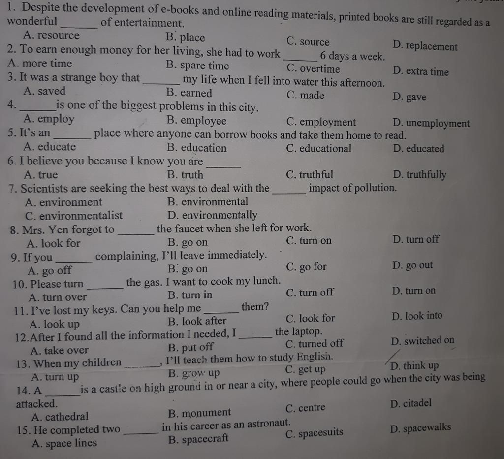 13. B. grow up
