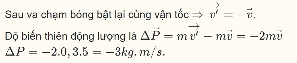 Sau khi va chạm vào tường và nảy trở lại với cùng vận tốc nên `v_{2}=-v_{1}`