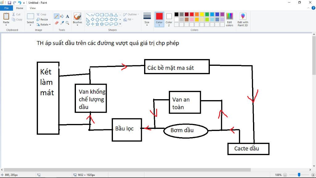 - TH làm việc bình thường: Dầu được bơm hút từ cacte và được lọc sạch ở bầu lọc, qua van khống chế lượng dầu tới đường dầu chính và đến bôi trơn các bề mặt ma sát của động cơ rồi trở về cacte