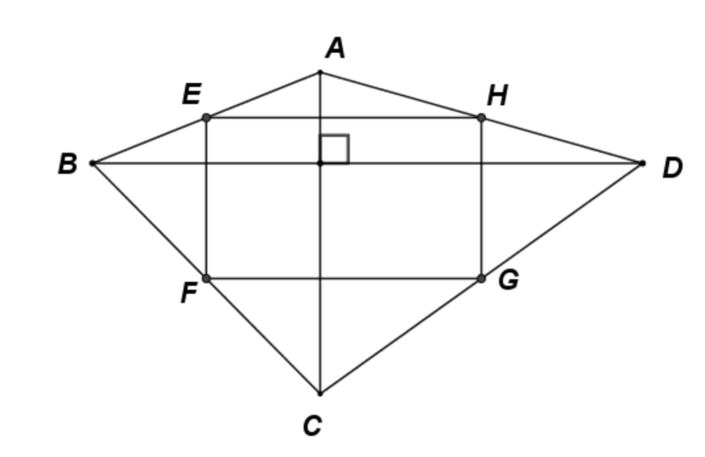 Vậy để EFGH là hình vuông thì 2 đường chéo phải bằng nhau