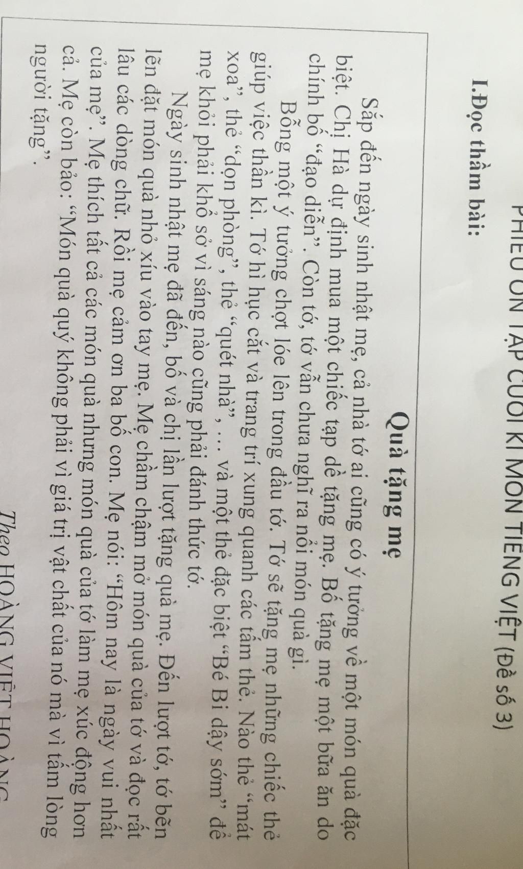 -Câu nói của mẹ giúp em hiểu thêm về ý nghĩa của việc tặng quà là : "Món quà quý không phải vì giá trị vật chất của nó mà vì tấm lòng người tặng "