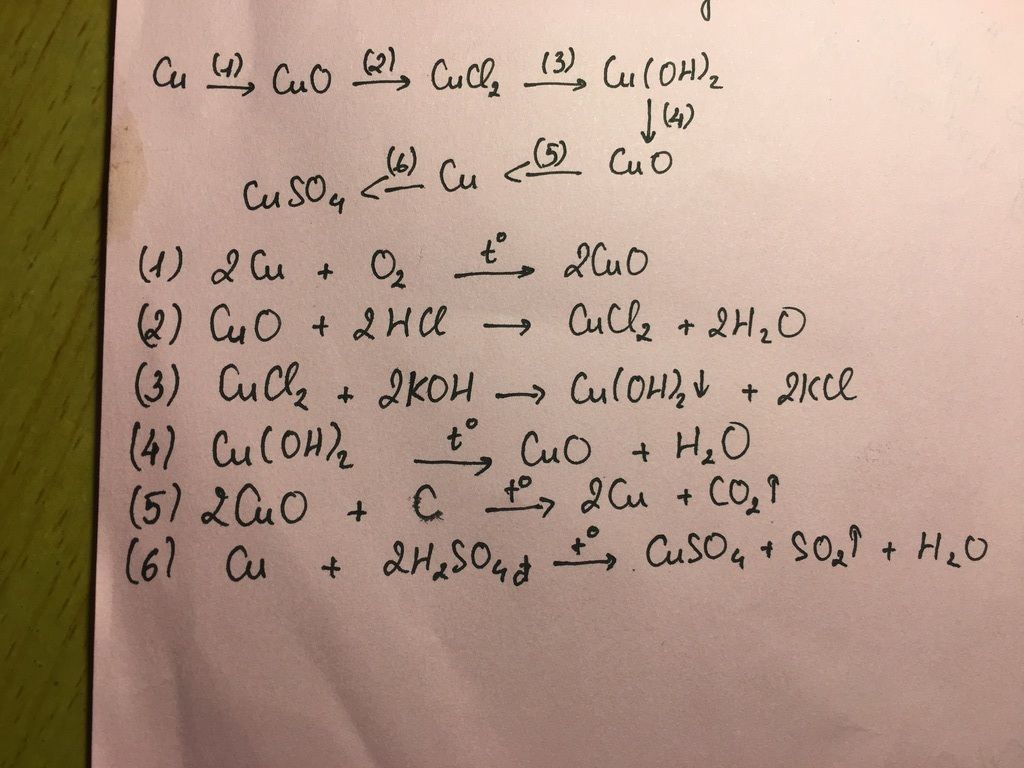 Cu(OH)2 (t*)-> CuO+ H2O