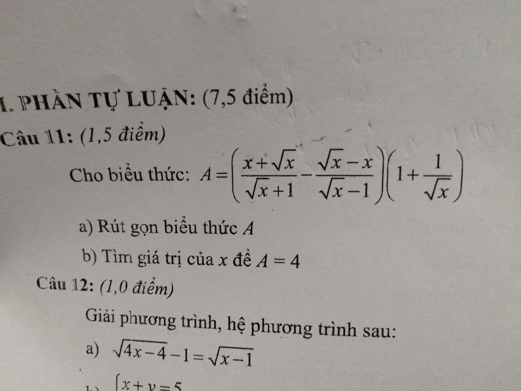 b, A=( $\frac{x+\sqrt[]{x}}{\sqrt[]{x}+1}$- $\frac{\sqrt[]{x}-x}{\sqrt[]{x}-1}$).(1+ $\frac{x}{\sqrt[]{x}}$)