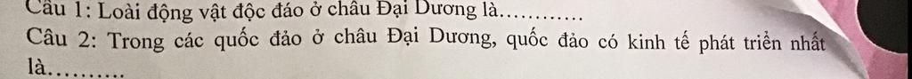 1. Có những động vật độc đáo ở châu đại dương là: các loài thú có túi, cáo mỏ vịt...