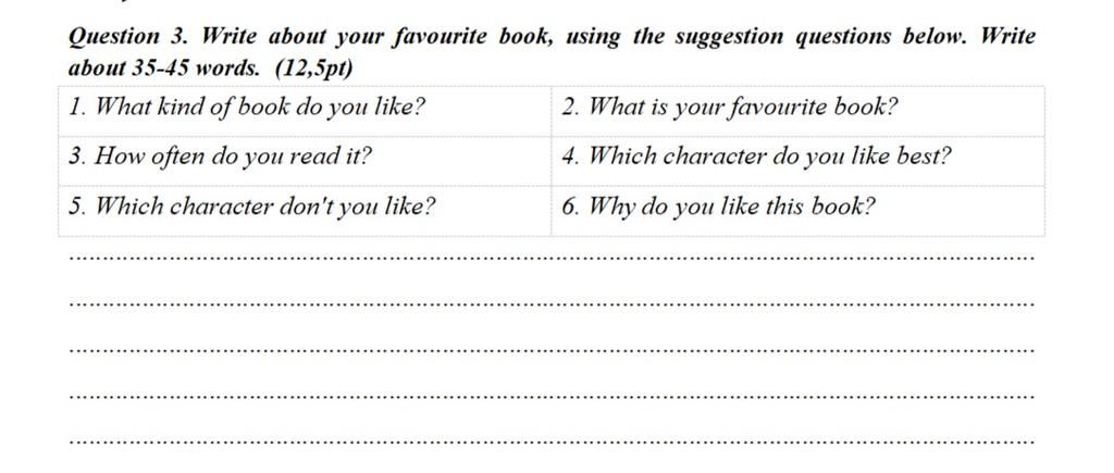 I like comic book very much. My favourite come book is Doraemon. I often read it in my free time as Monday, Sunday......... In this book, the character I like best is Doraemon. I don't like Chaien. Doraemon is very funny and intelligent but Chaien enjoyed fighting ( thích đánh nhau ). I like it best beacause it's a funny comic book and it help me to relax. Thanks for reading.