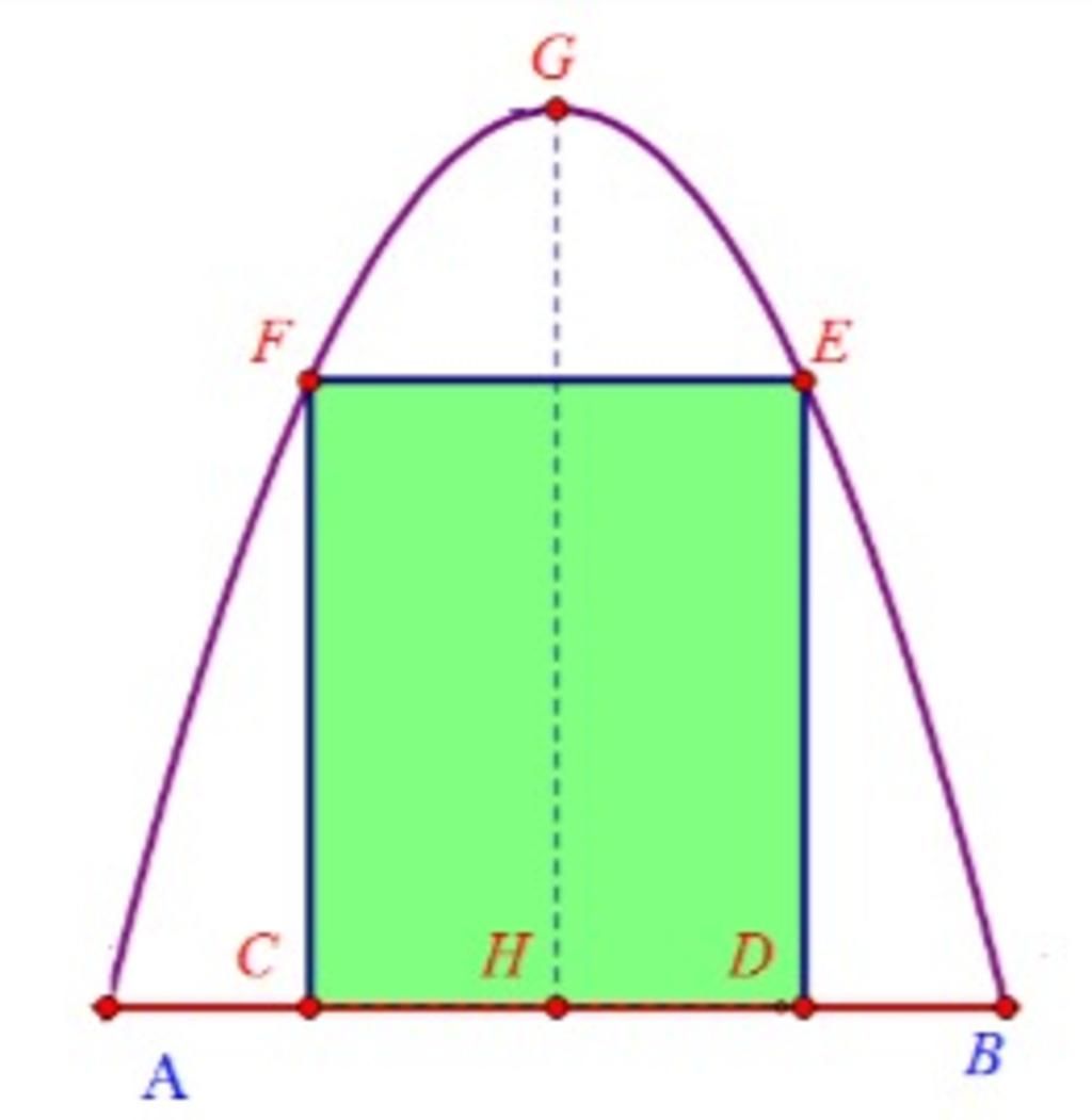 Gắn hệ trọc $Oxy$ sao cho $AB$ trùng với $Ox$. Khi đó parabol có đỉnh $ G(2;4)$ và đi qua gốc tọa độ.