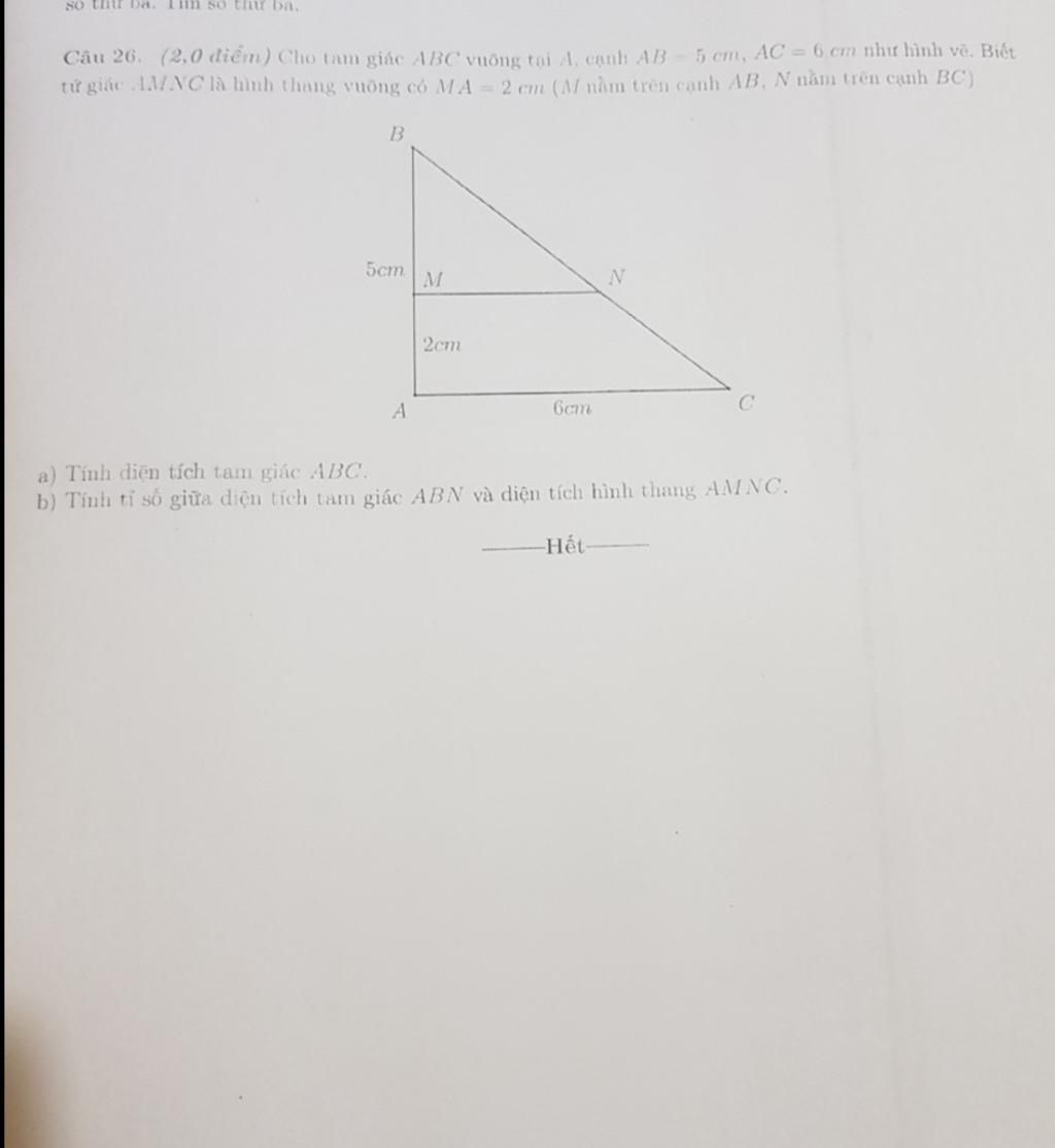 Câu 26. (2,0 diểm) Cho tam giác ABC vuông tai A, canh AB