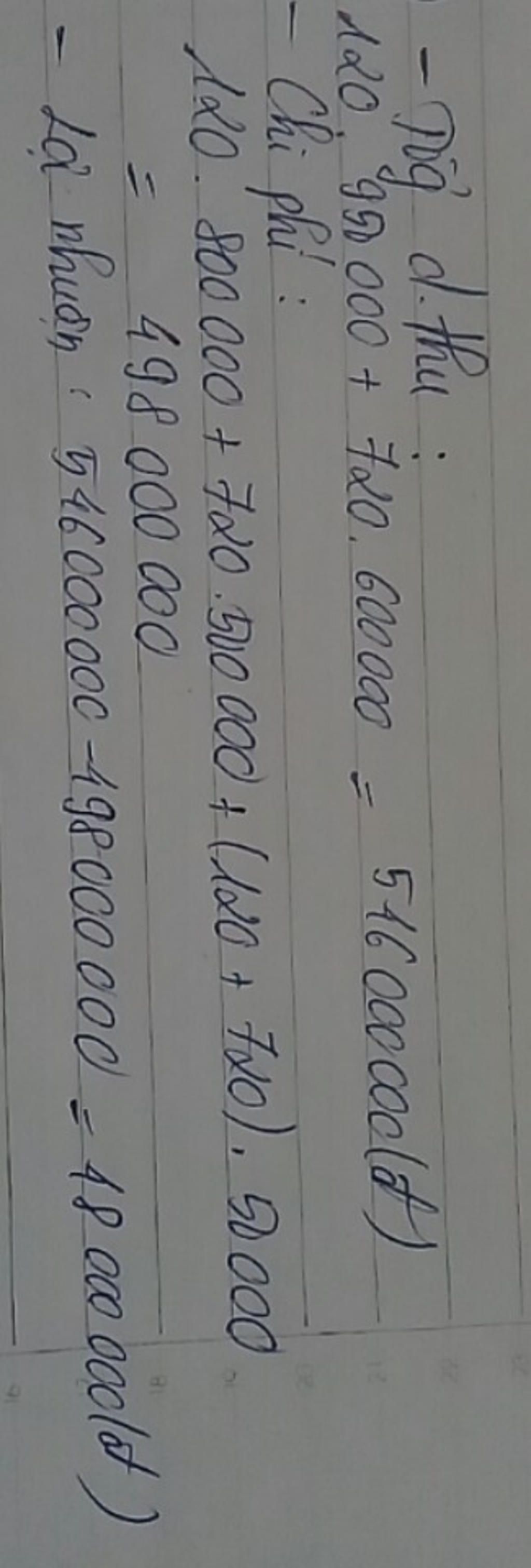-Chi phí kinh doanh nghành A: 120x800000=96000000₫
