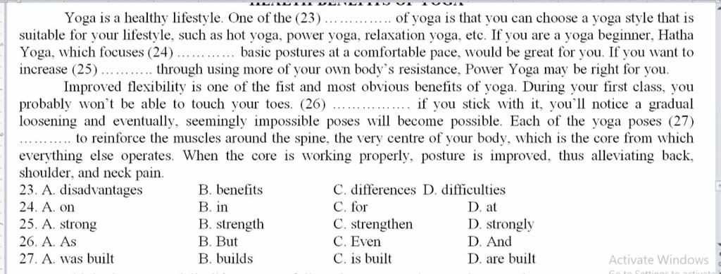 Yoga is a healthy lifestyle. One of the (23).