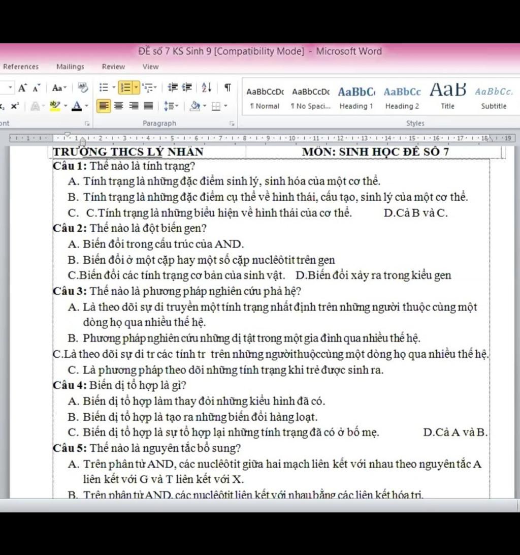 Câu 1: D