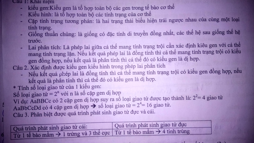 Kiểu gen bao gồm các alen về các tính trạng đang xét. Ví dụ: Aa, BB là các kiểu gen