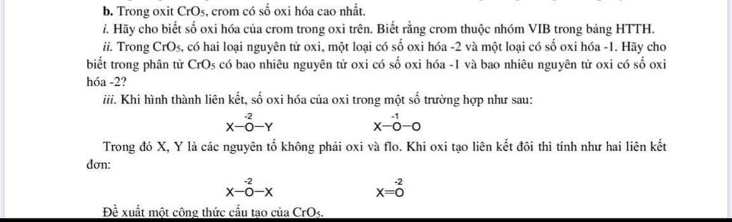 Trong $CrO_5$, $Cr$ có số oxi hoá cao nhất nên số oxi hoá $Cr$ là $+6$