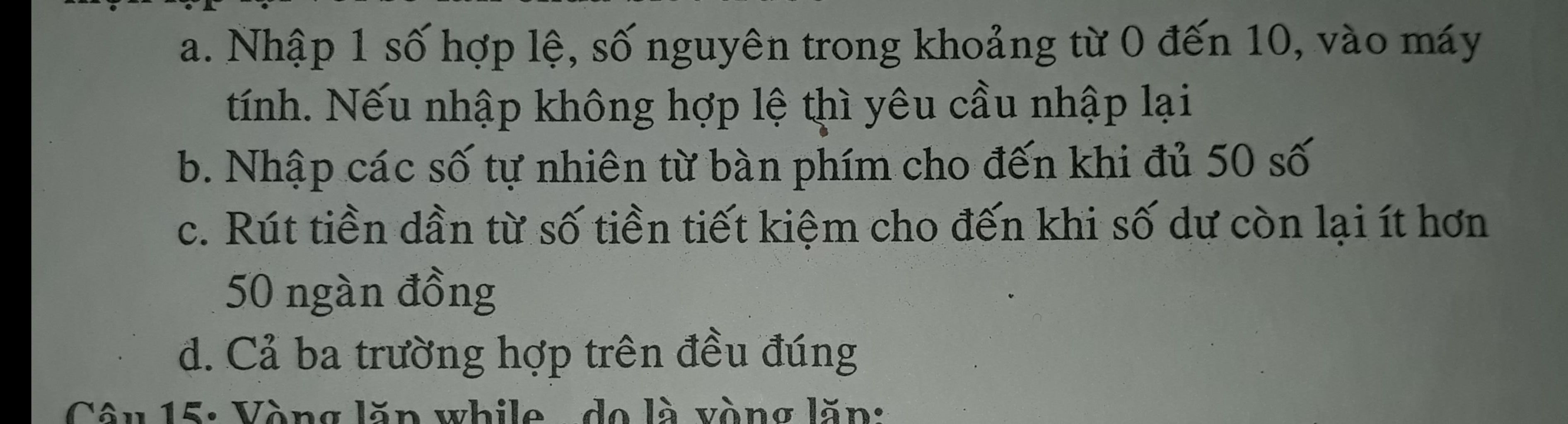 b. Nhập các số tự nhiên từ bàn phím cho đến khi đủ 50 số
