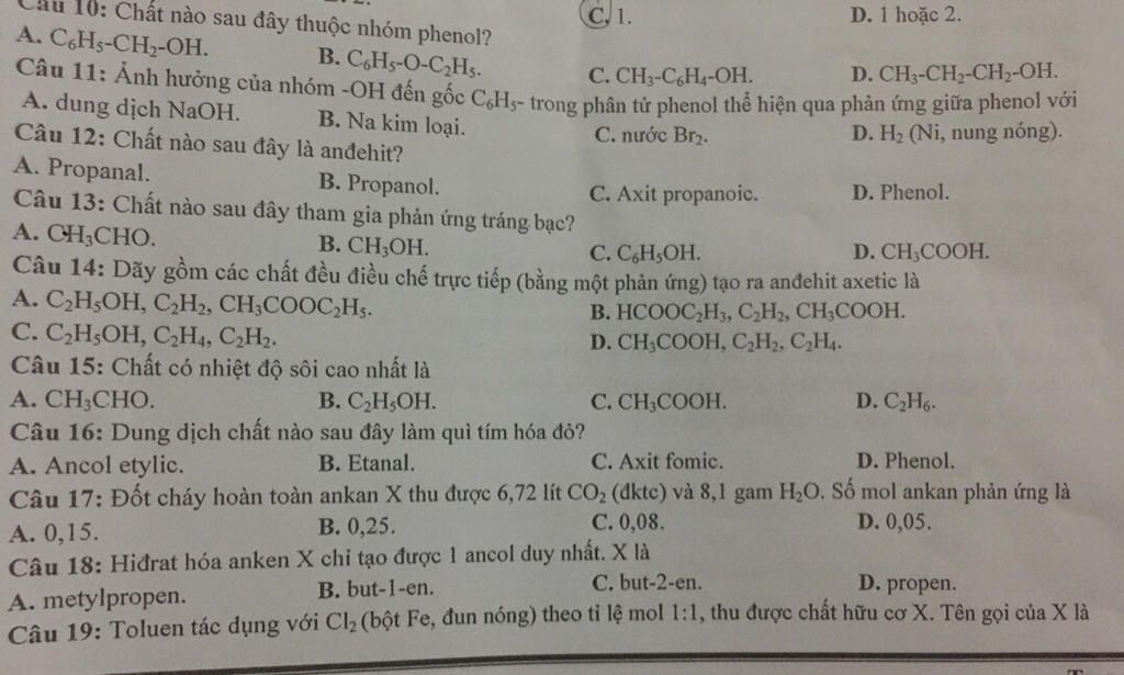 $19.$ o-clotoluen hoặc p-clotoluen