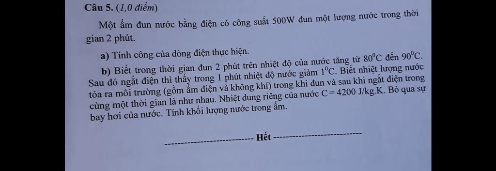 b) nhiệt lượng bếp tỏa ra trong khu đun bằng nhiệt lượng nước tỏa ra và giảm 1 độ trong 1p khi ngắt điện: