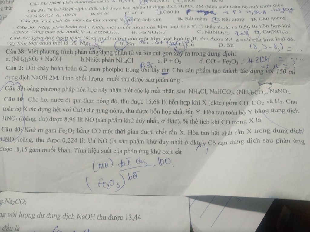 Câu 41: Khử m gam Fe2O3 bằng CO một thời gian được chất rắn X. Hòa tan hết chất rắn X trong dung dịch HNO3 loãng, thu được 0,224 lít khí NO (là sản phẩm khử duy nhất ở đktc), Cô cạn dung dịch sau phản ứng được 18,15 gam muối khan. Tính hiệu suất của phản ứng khử oxit sắt
