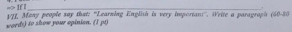 To sum up, Learning English is very important with us which helps us to attend good results in the working. We must try to learn good English because it is one the most difficult languages.