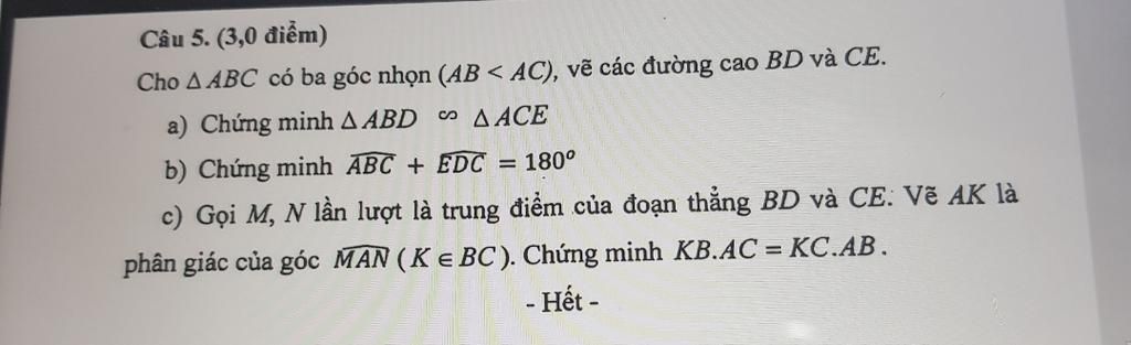 từ 2 điều đó =>tam giác abd đồng dạng với tam giác ace(ĐPCM)