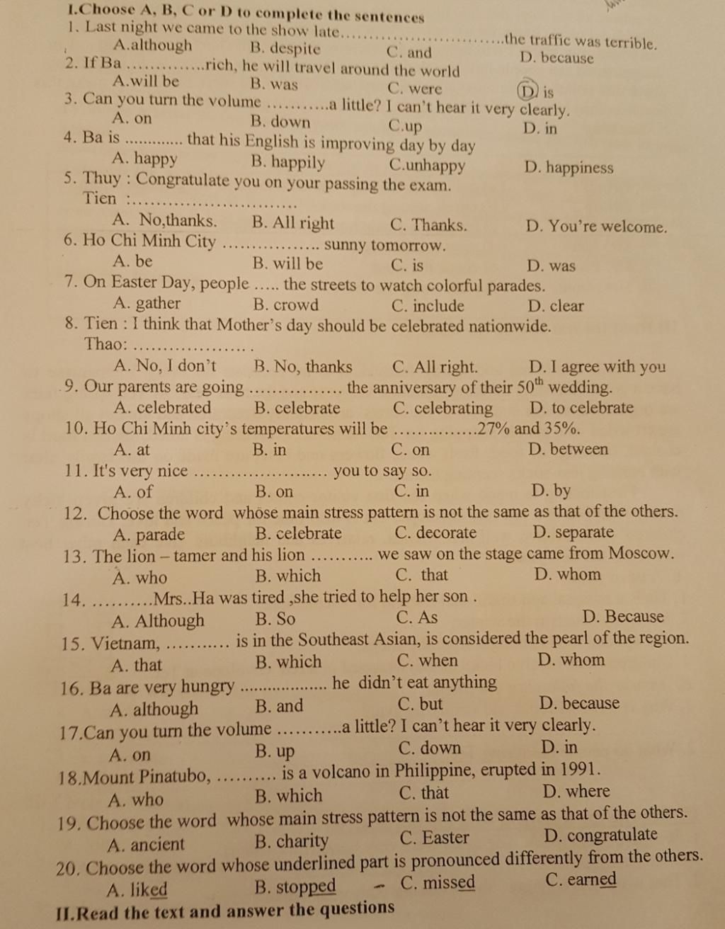 18. D congratulate ( ( nhấn âm 2 còn lại âm 1 )