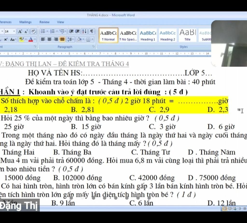 Đổi 18 phút bằng giờ , ta sẽ lấy :