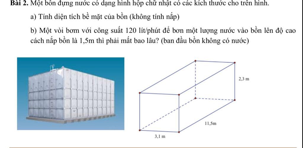 Chiều dài của bồn chứa nước hình hộp chữ nhật là 11,5m => b=11,5m