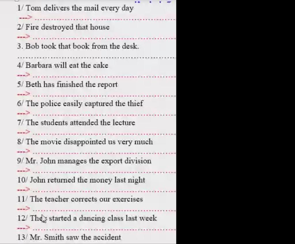 1. The mail is delivered by Tom every day.