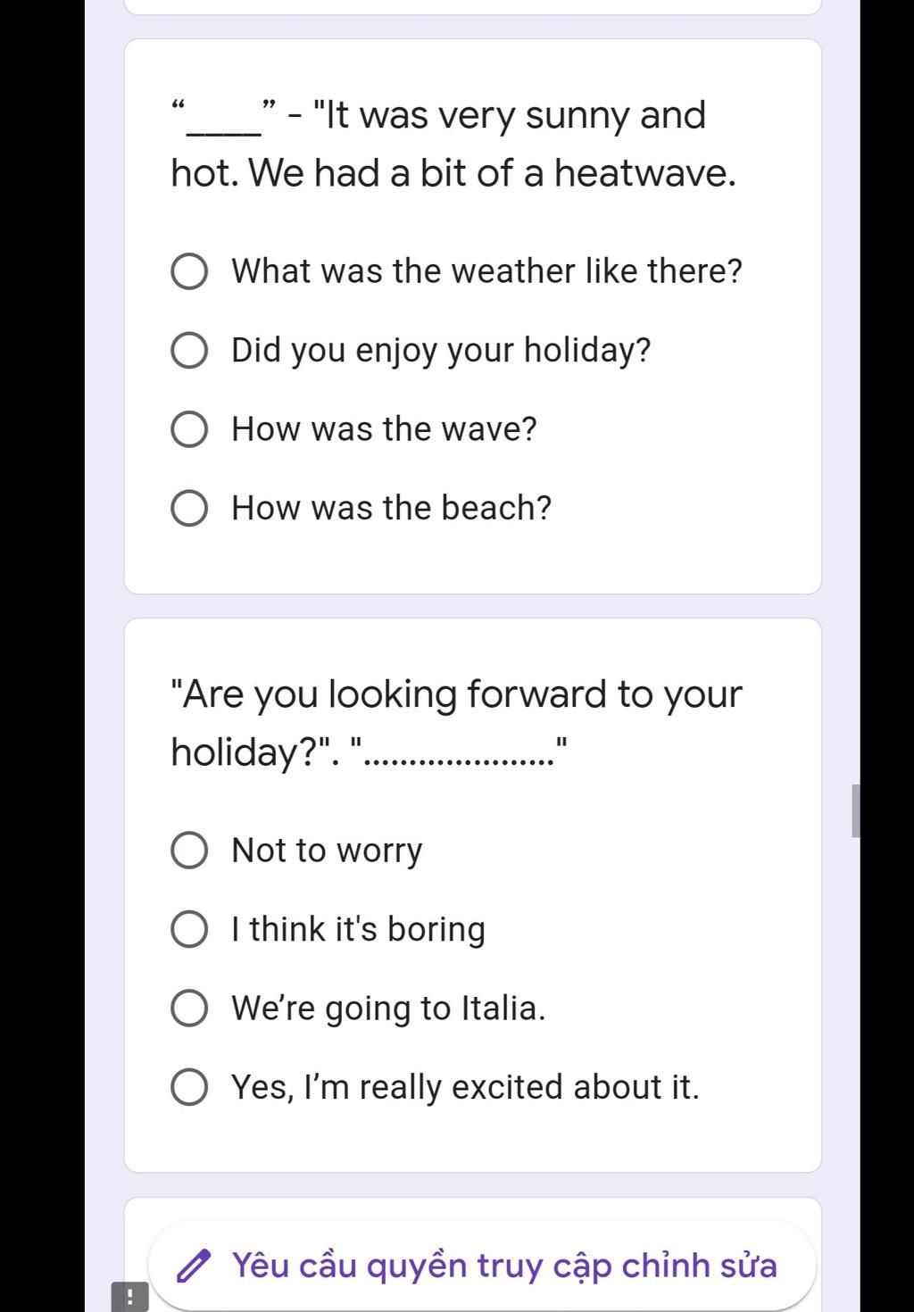 - " What was the weather like there?" - "It was very sunny and hot. We had a bit of heatwave.