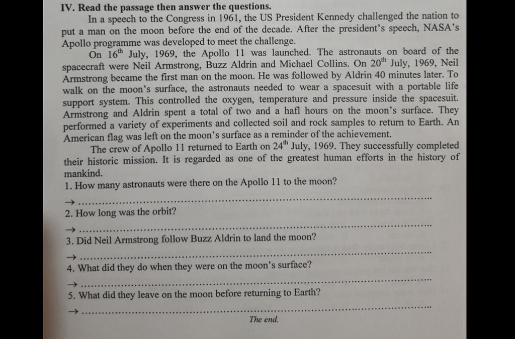 4. They performed a variety of experiments and collected soil and rock samples to return to Earth ( line 9, 10 )