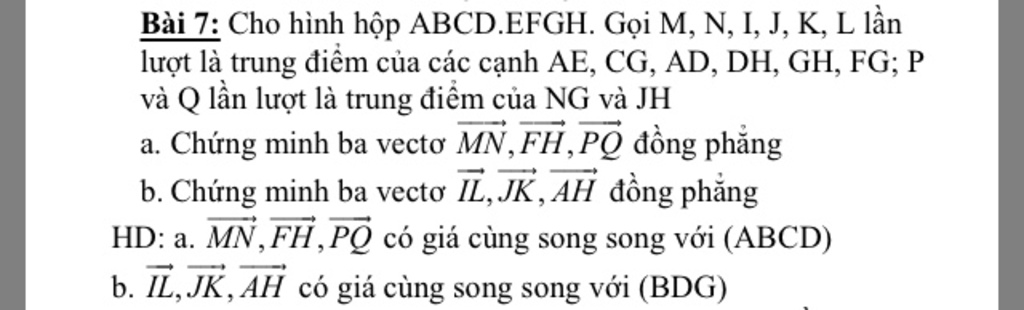 \(\Rightarrow \vec{MN},\vec{FH},\vec{PQ}\) đồng phẳng