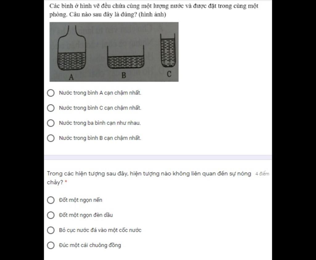 Các bình ở hình vẽ đều chứa cùng một hrợng nước và được đặt trong cùng một