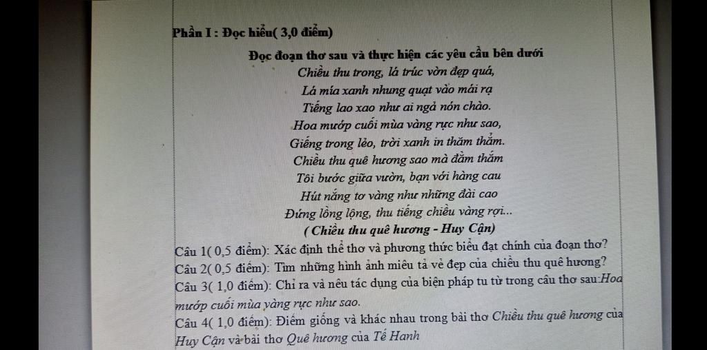 1, Thể thơ tám chữ. PTBĐ chính: miêu tả