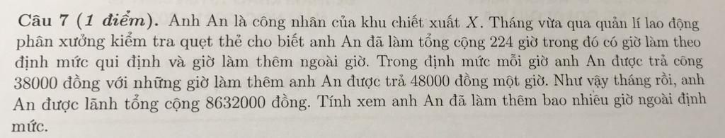 $(224-x).48000$ là số tiền nhận được trong 1 giờ ngoài giờ quy định