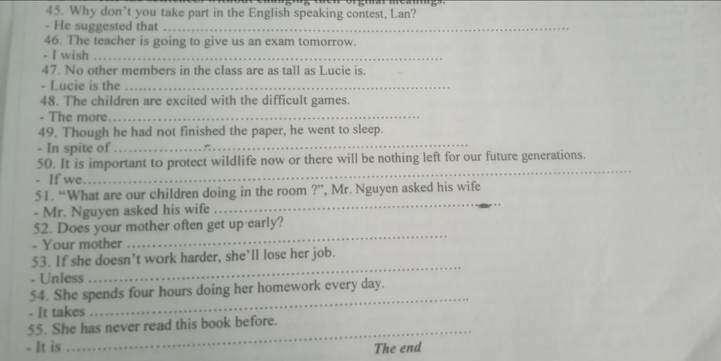 46. I wish the teacher weren't going to give us an exam tomorrow.