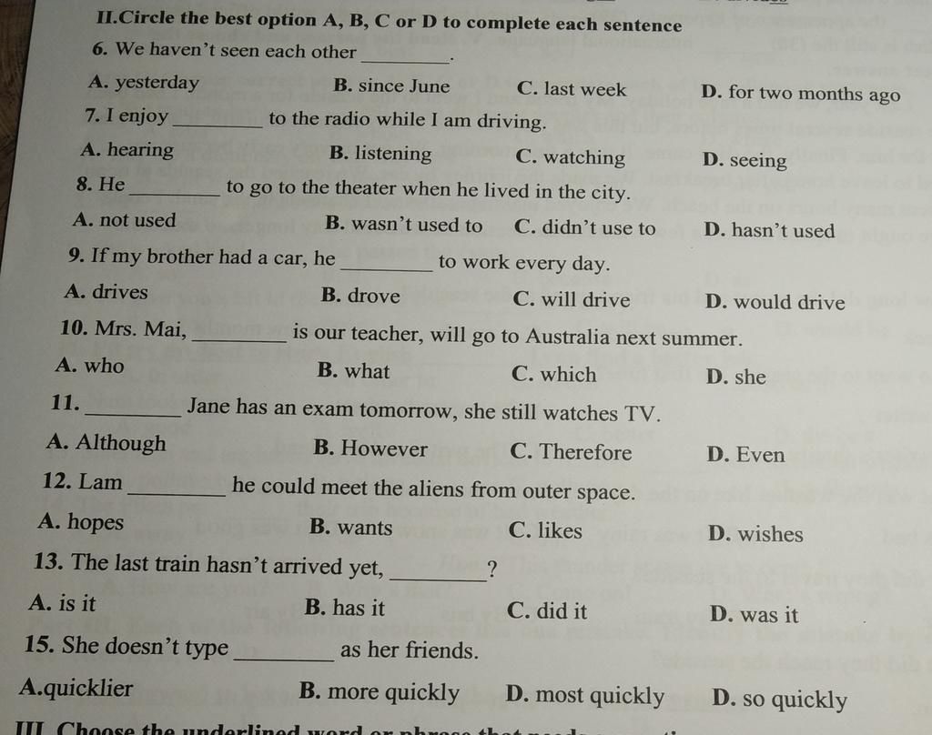 6b ( thì HTHT => since June : since + thời gian cụ thể )