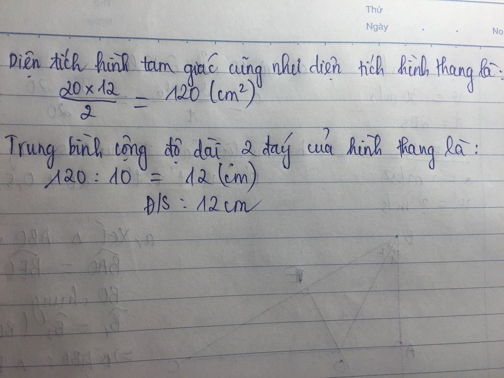 Công thức tính diện tích hình thang là: trung bình cộng độ dài 2 đáy x chiều cao nên lấy diện tích chia cho chiều cao là ra trung bình cộng 2 đáy rồi nha