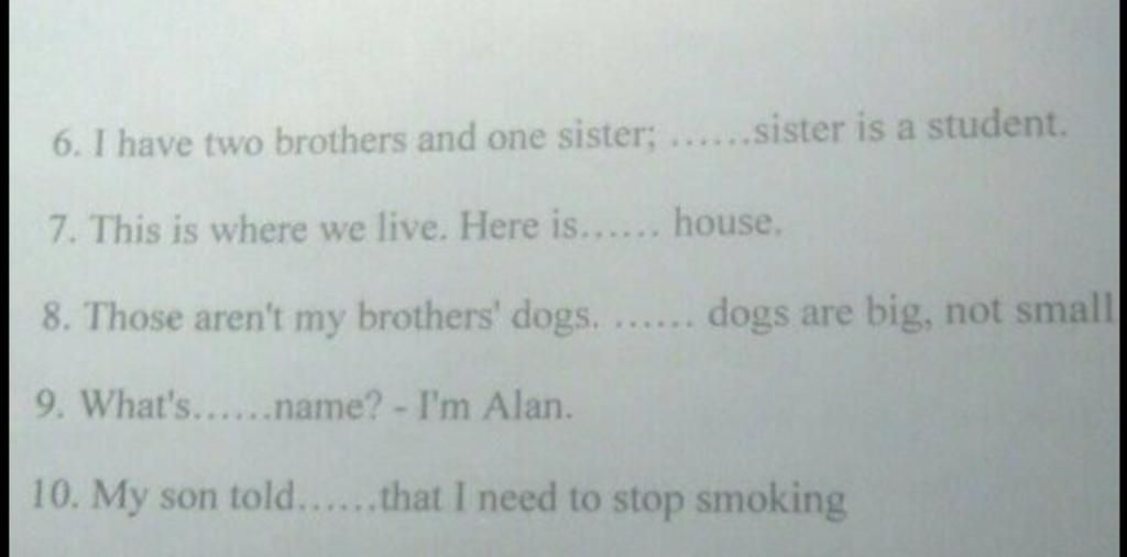 6. My (Tính từ sở hữu cho chủ ngữ $I$ vì sau nó có 1 danh từ: sister)