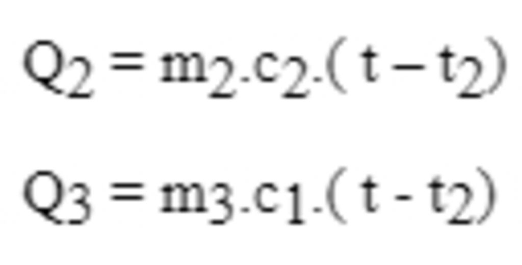 $m_{1}.c_{1}.Δt_{1}=(m_{2}.c_{2}+m_{3}.c_{3}).Δt_{2}$