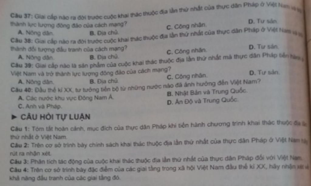 - Giai cấp nông dân, số lượng đông đảo, bị áp bức bóc lột nặng nề nhất, họ sẵn sàng hưởng ứng, tham gia cuộc đấu tranh giành độc lập dân tộc. Một bộ phận nhỏ mất ruộng đất vào làm việc trong các hầm mỏ, đồn điền.