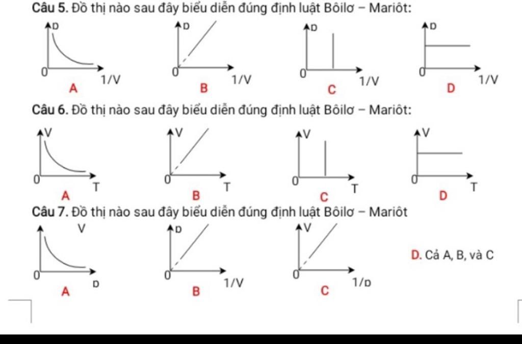 Đường biểu diễn định luật Bôi - lơ – Ma - ri - ốt trong các đồ thị: