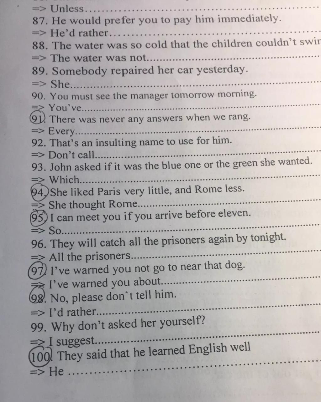 `87`. He'd rather you paid him immediately. ( would rather sb Ved: mong muốn ai làm gì )