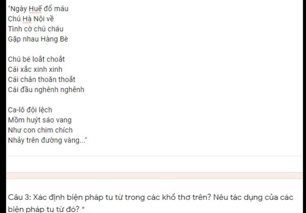 $→$ Biện pháp tu từ trong các khổ thơ trên: