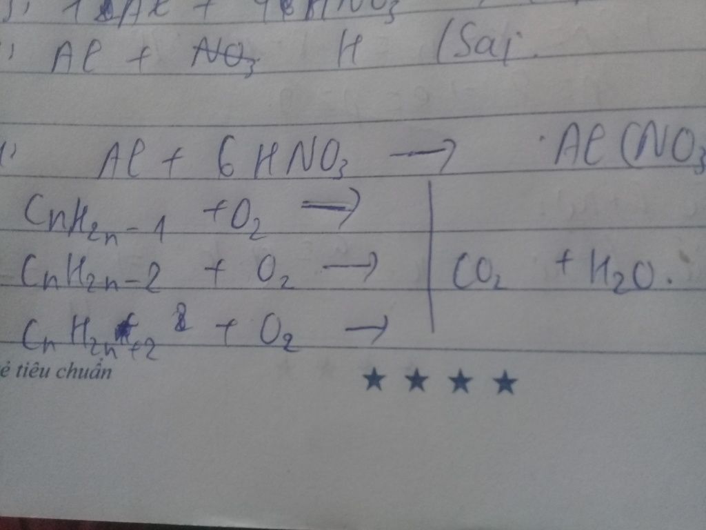 CnH2n-1 + (3n/2 - 1/4)O2 -> nCO2 + (n -1/2) H2O