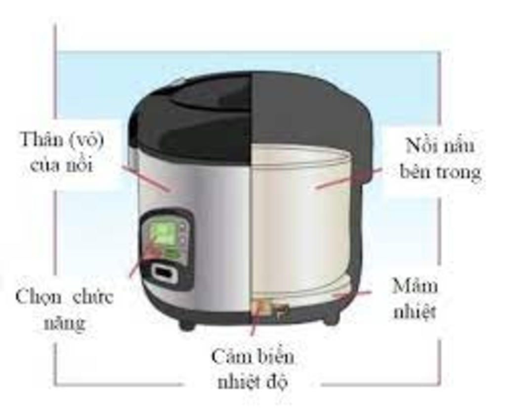 Cấu tạo: Gồm 3 bộ phận chính: vỏ nồi, soong và dây đốt nóng: